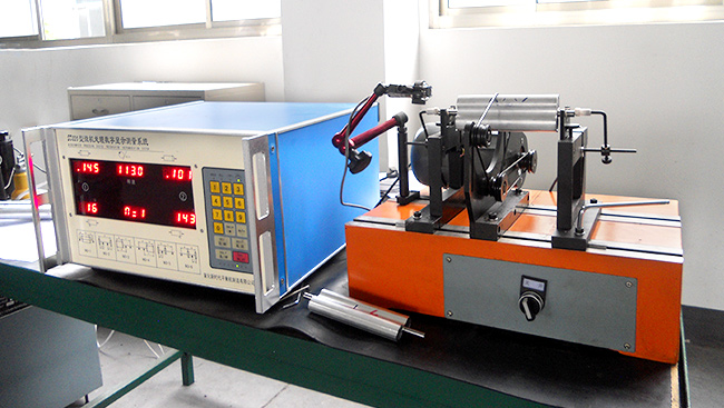平衡機(jī)由控制驅(qū)動(dòng)部分、彈性支撐部分和傳感測量系統(tǒng)部分組成,驅(qū)動(dòng)部分控制旋轉(zhuǎn)體旋轉(zhuǎn),其不平衡震動(dòng)迫使彈性支撐架發(fā)生變形,由安裝在支撐架的傳感器感應(yīng)出電信號(hào)給電測系統(tǒng),最后經(jīng)過電測系統(tǒng)的計(jì)算處理直接顯示出平衡量的大小和位置。